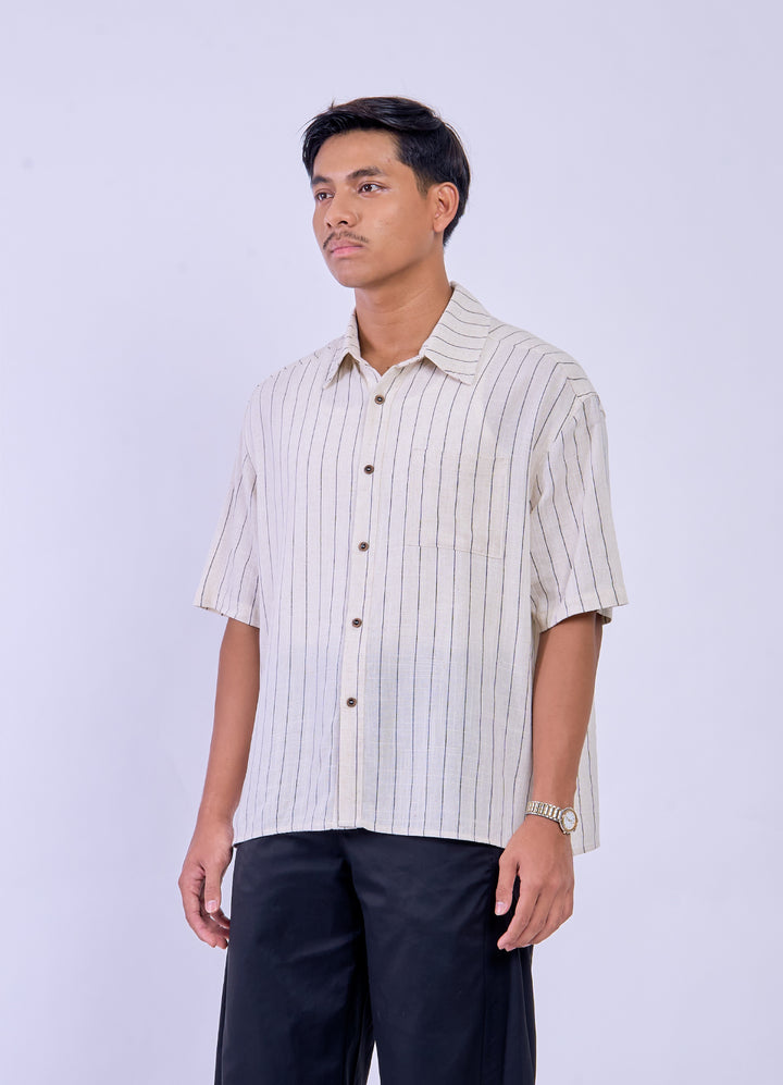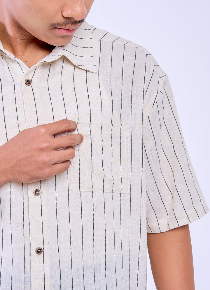 Elevate your casual style with the Langit Linen Stripe Shirt, designed for comfort and everyday versatility.